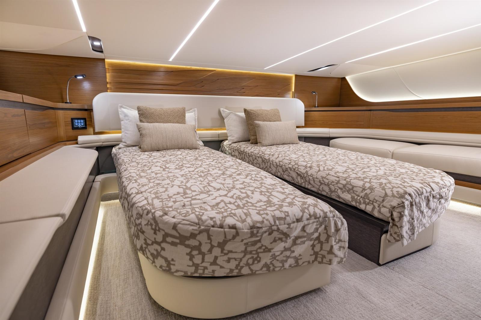 Fume/Gas Detector, 4 Engine Alarm, Bilge Alarm, Special Colour (a scelta, standard), Deck Shower, Electric Flaps (Zipwake Dynamic Trim control system), Hard top (elettrico), Fire Extinguishing System, Flaps Indicators, Anchor Chain Washdown, Washbasin in the cockpit, Courtesy Lights, Underwater lights, Platform, 3 Automatic Bilge Pump, Entry door, Shorepower connector, Water harbor connector system, Voltage Rectifier, Electric Windlass, swimming ladder, cockpit table, guard rails with gates, Horn.